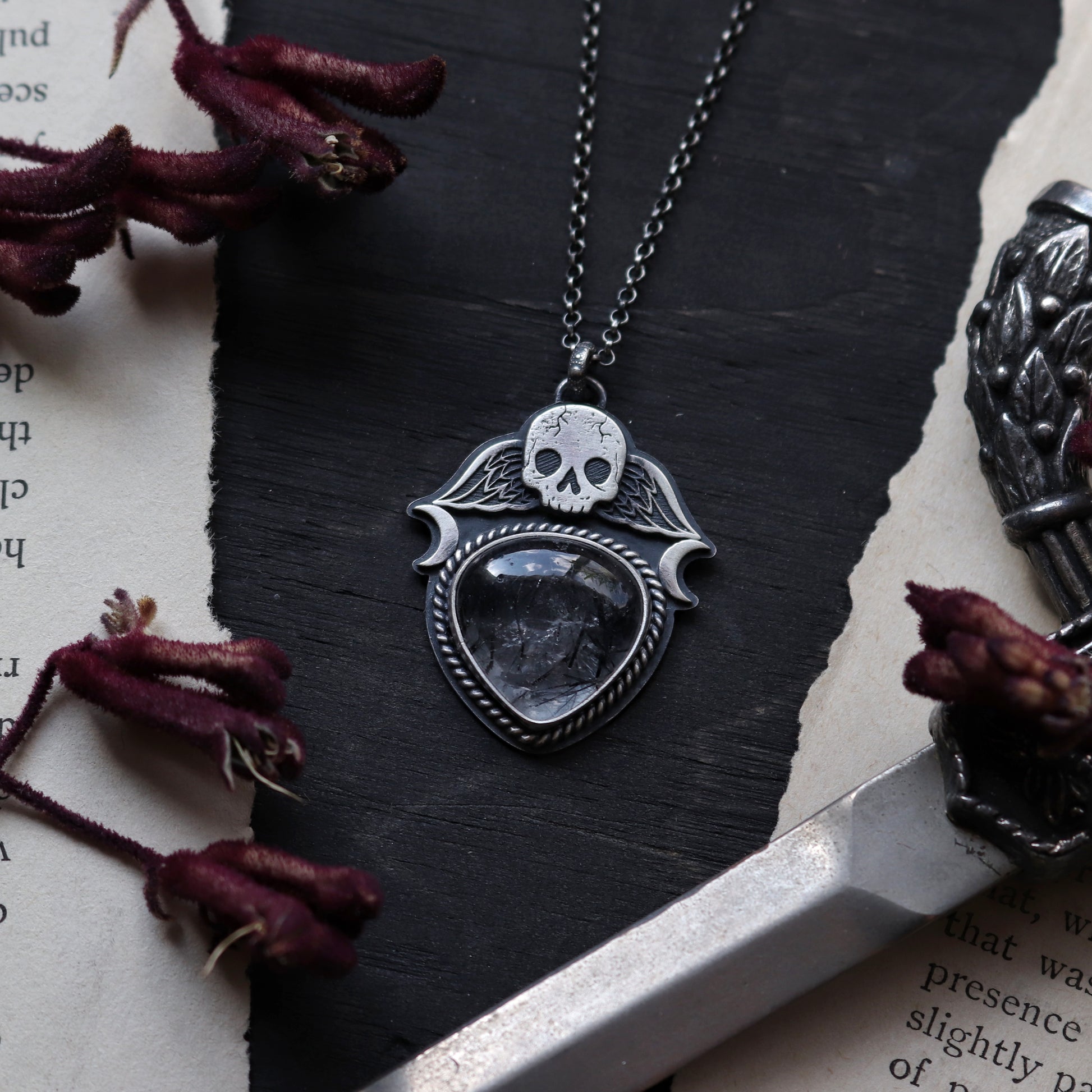 PRODUCT DIMENSIONS & SPECS: This pendant is 1.5 inches in drop down length and features a unique Tourmalinated Quartz gemstone!