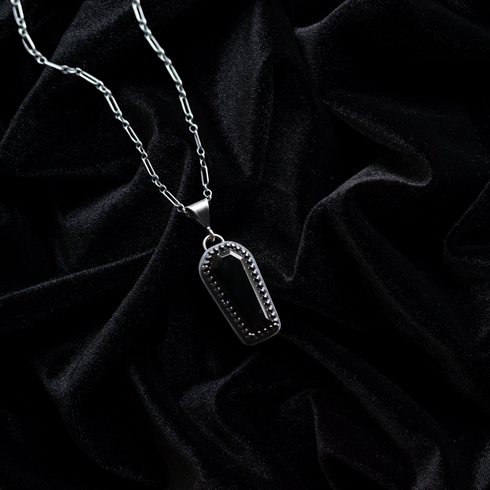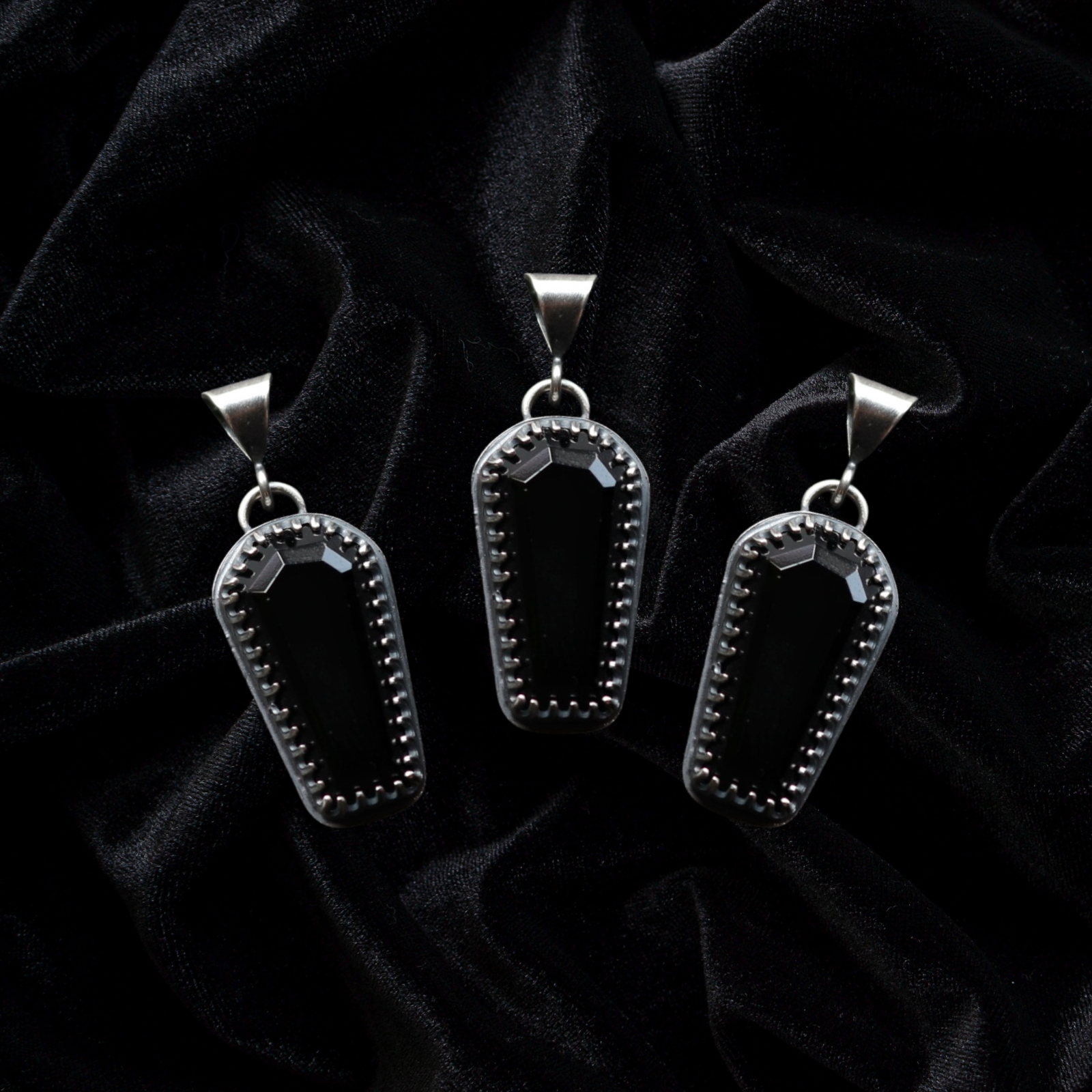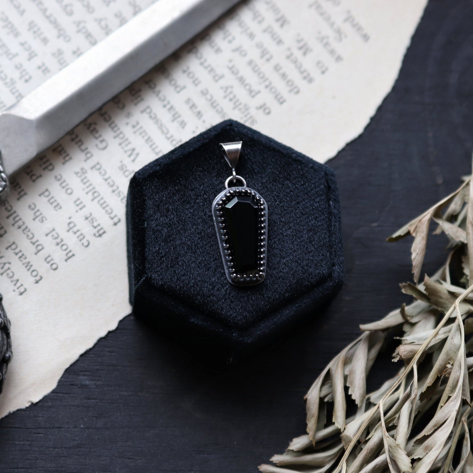 PLEASE NOTE: This listing is for one Black Spinel Coffin shaped Charm WITHOUT Chain. Those are available for purchase Here in a variety of styles! Your charm will be added to the chain of your choosing after purchase. For special requests you can leave a message in the "notes to seller" box at checkout.