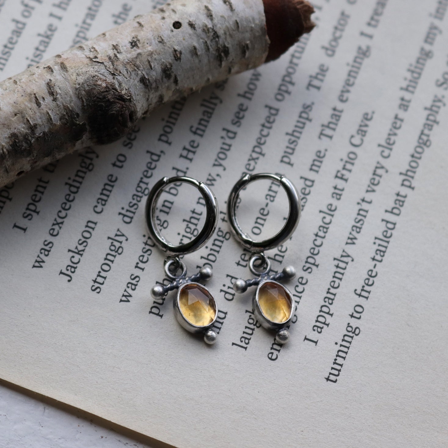 One pair of custom citrine Huggie hoop earrings.