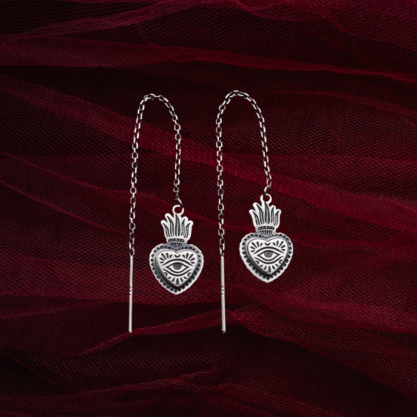 PLEASE NOTE: This listing is for one pair of Flaming Heart Threader Earrings.