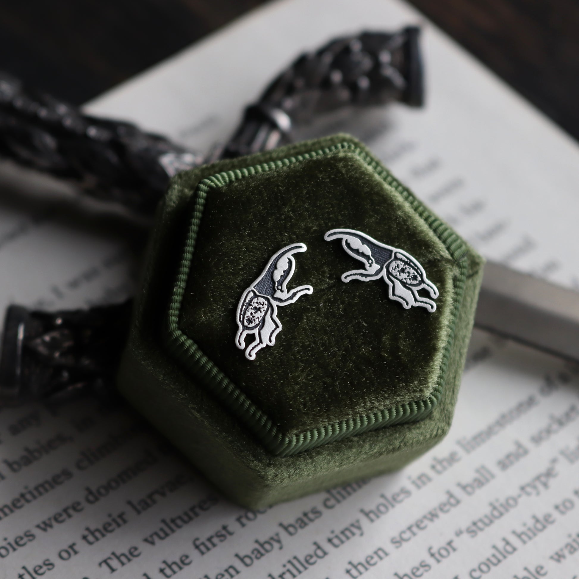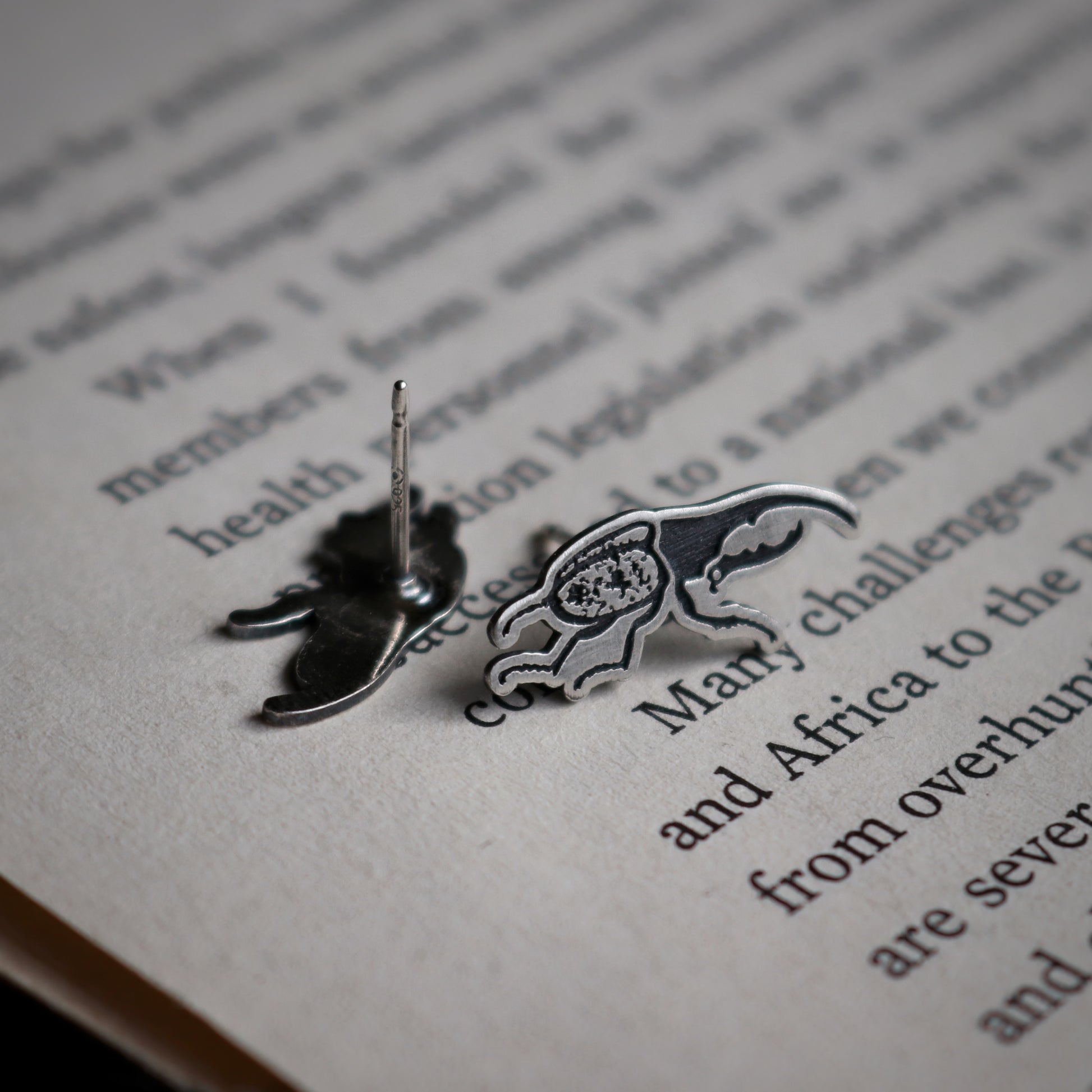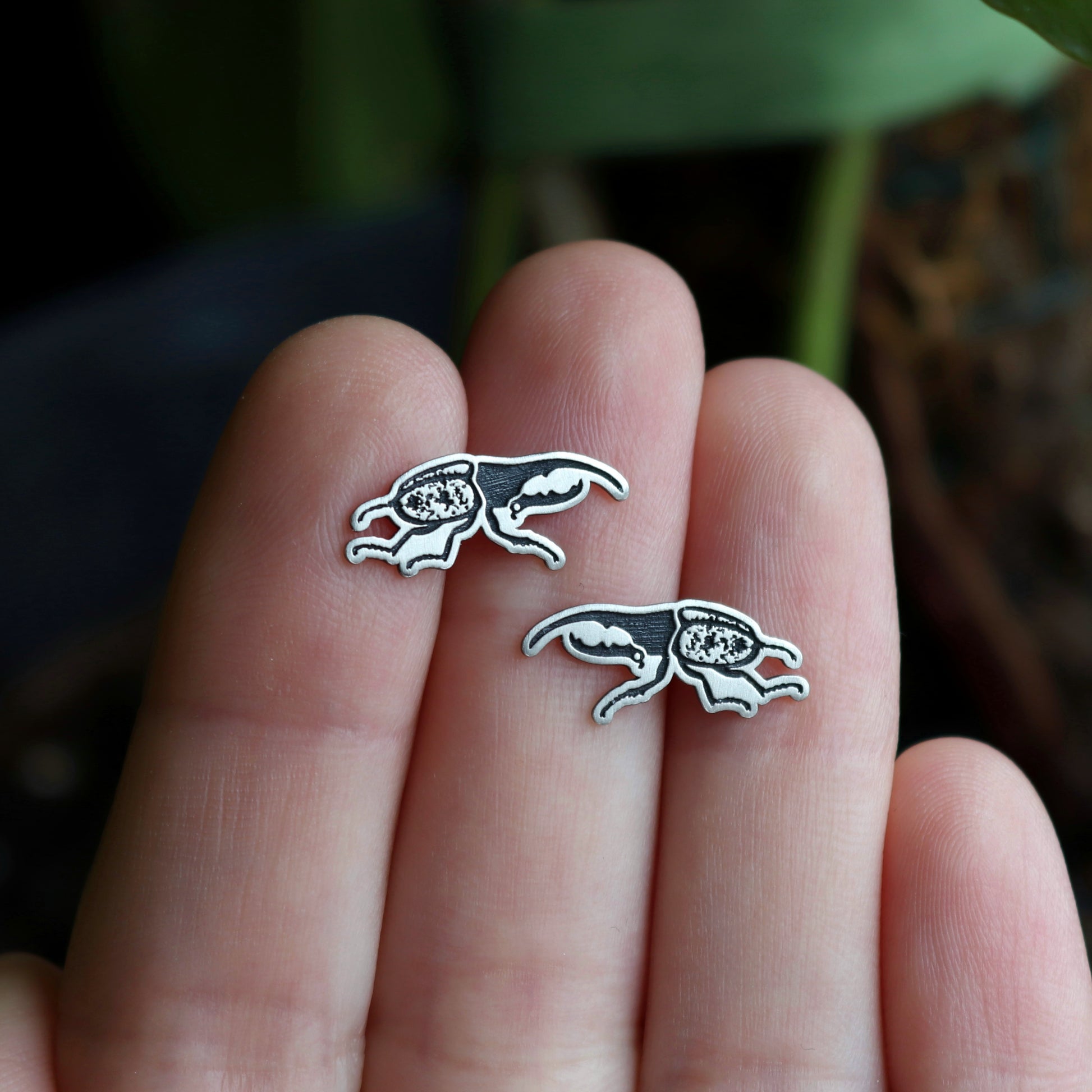 PLEASE NOTE: This listing is for (ONE PAIR) of Hercules Beetle stud earrings. Photo props are NOT included.