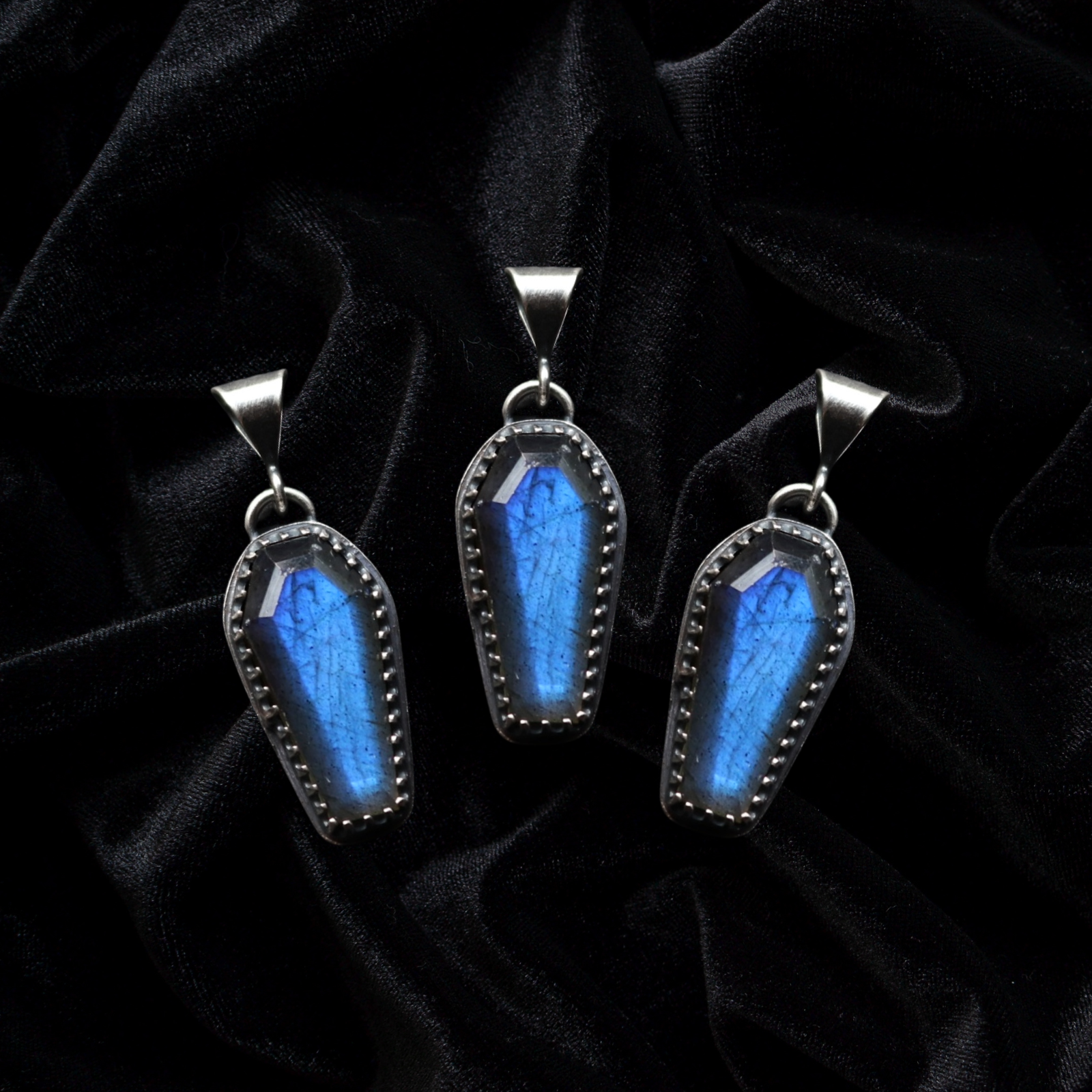 PLEASE NOTE: This listing is for one Labradorite Coffin shaped Charm WITHOUT Chain. Those are available for purchase Here in a variety of styles! Your charm will be added to the chain of your choosing after purchase. For special requests you can leave a message in the "notes to seller" box at checkout.