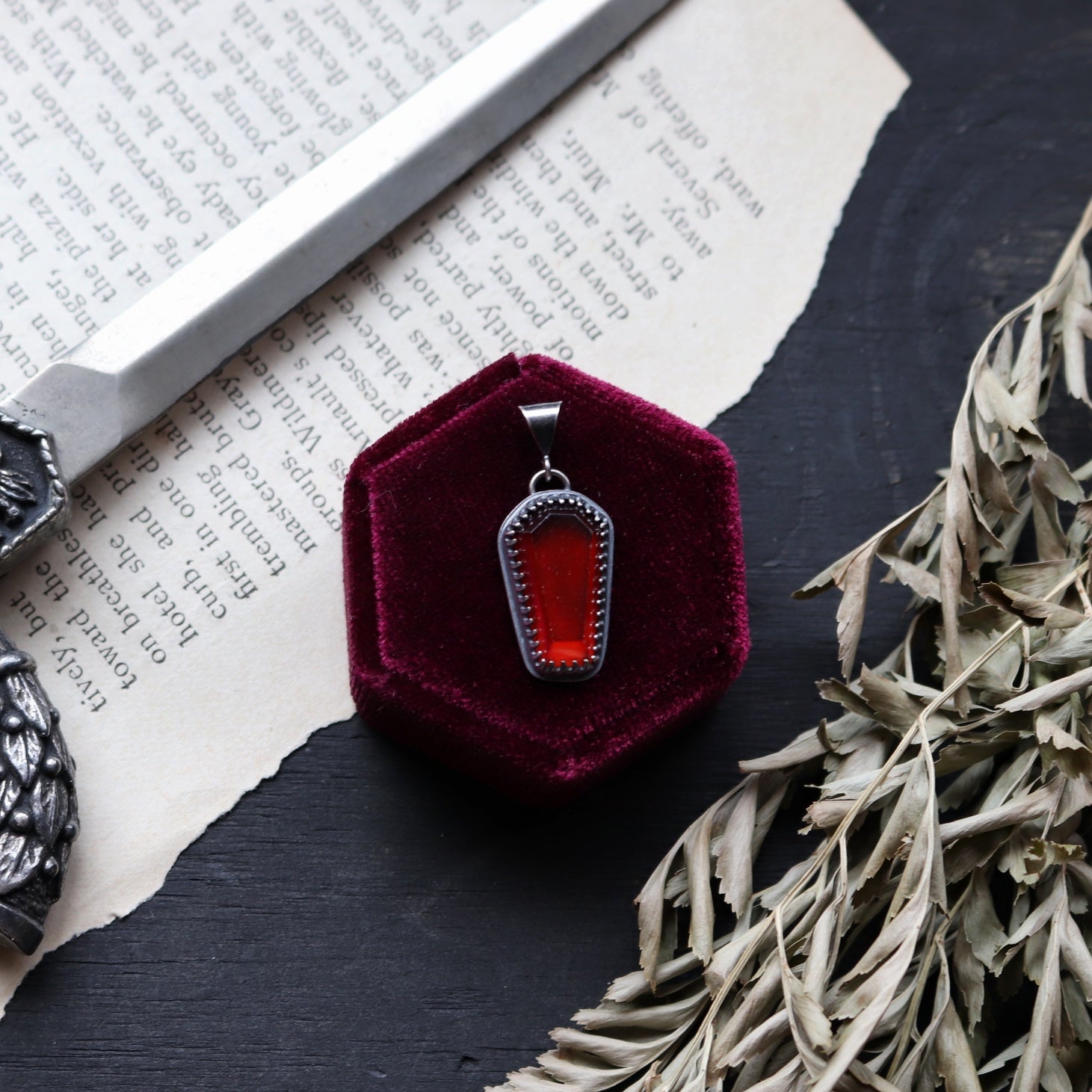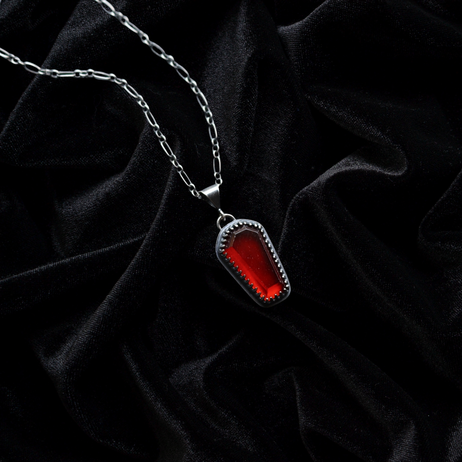 PLEASE NOTE: This listing is for one Red Garnet Coffin shaped Charm WITHOUT Chain. Those are available for purchase Here in a variety of styles! Your charm will be added to the chain of your choosing after purchase. For special requests you can leave a message in the "notes to seller" box at checkout.