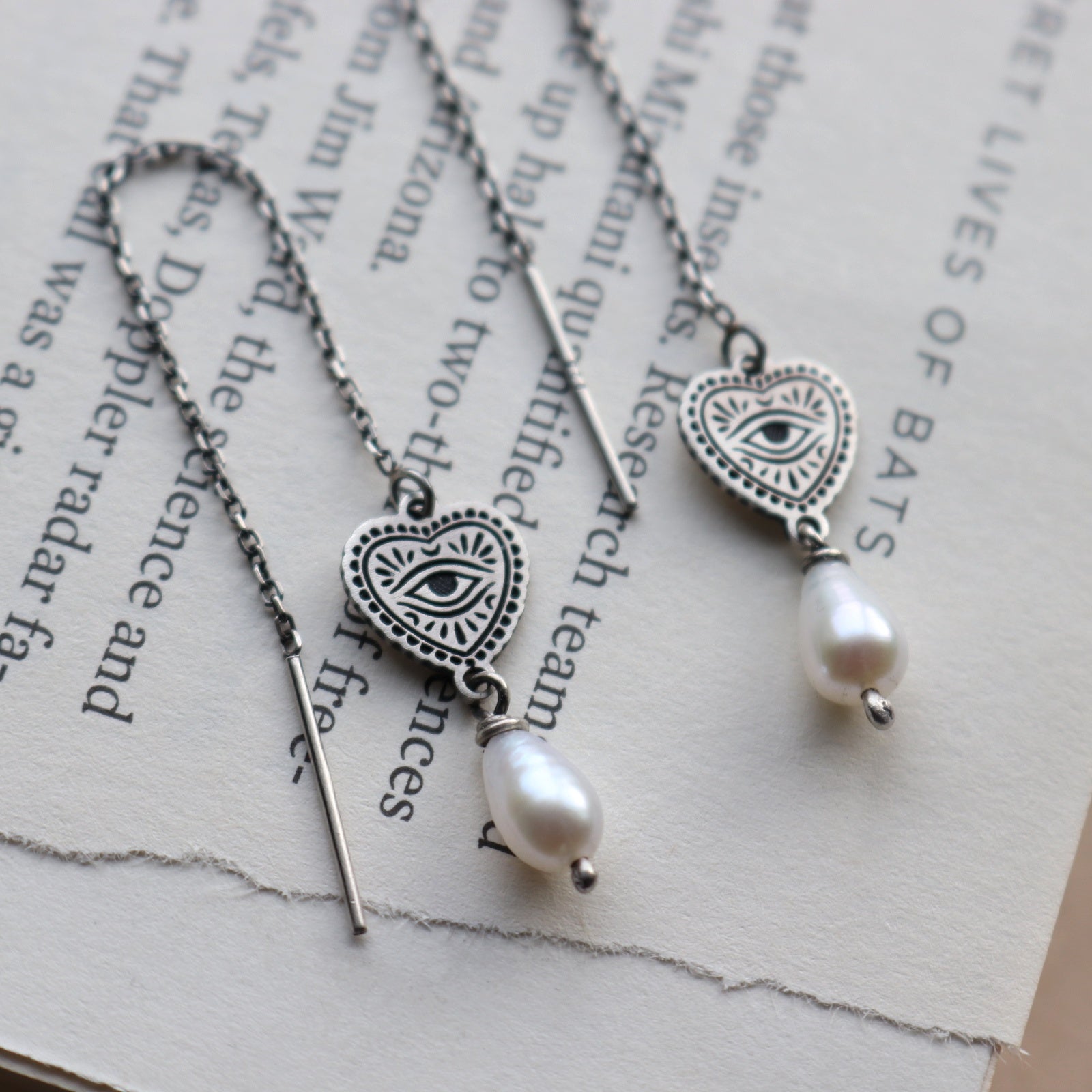 PLEASE NOTE: This listing is for one pair of Sacred Heart Threader Earrings.