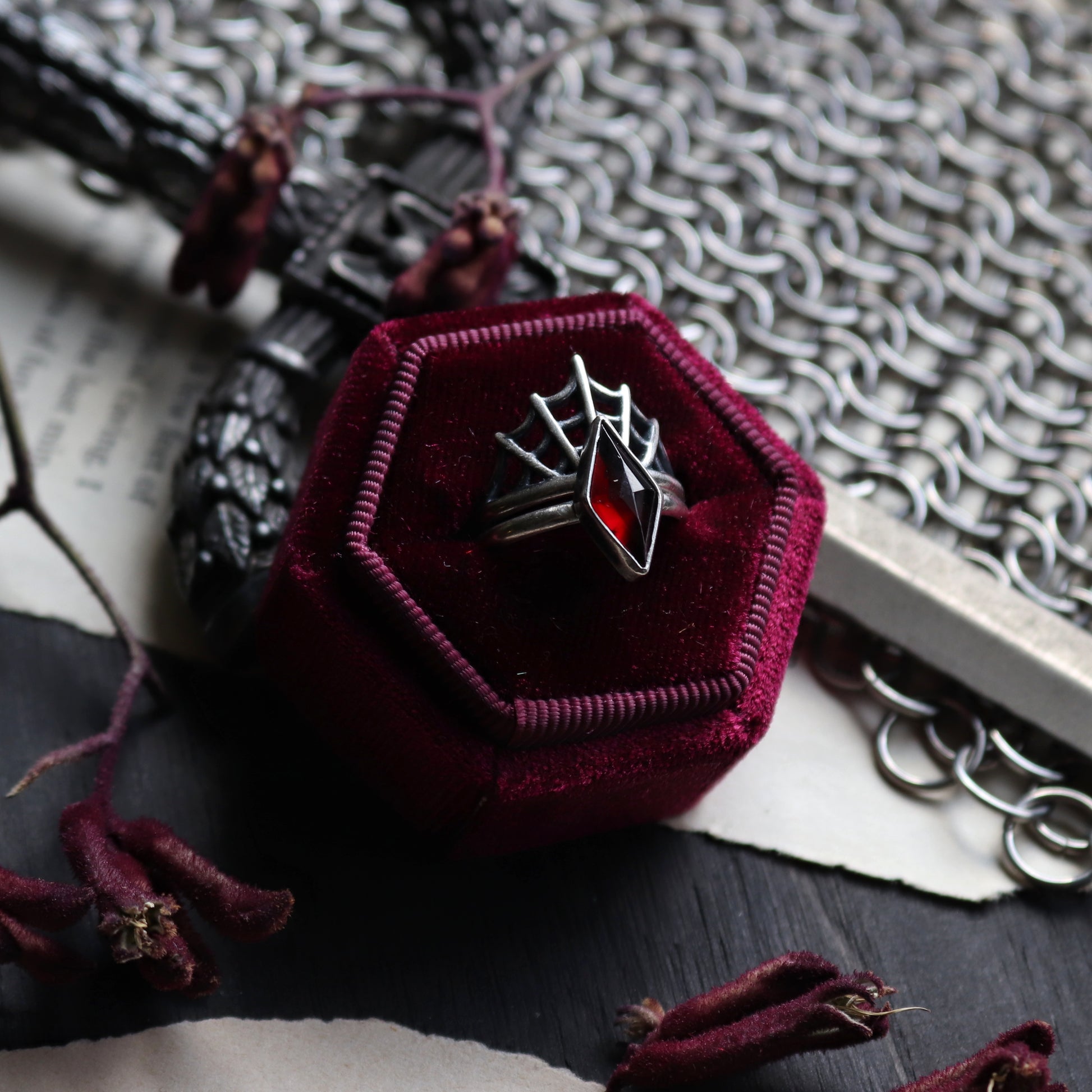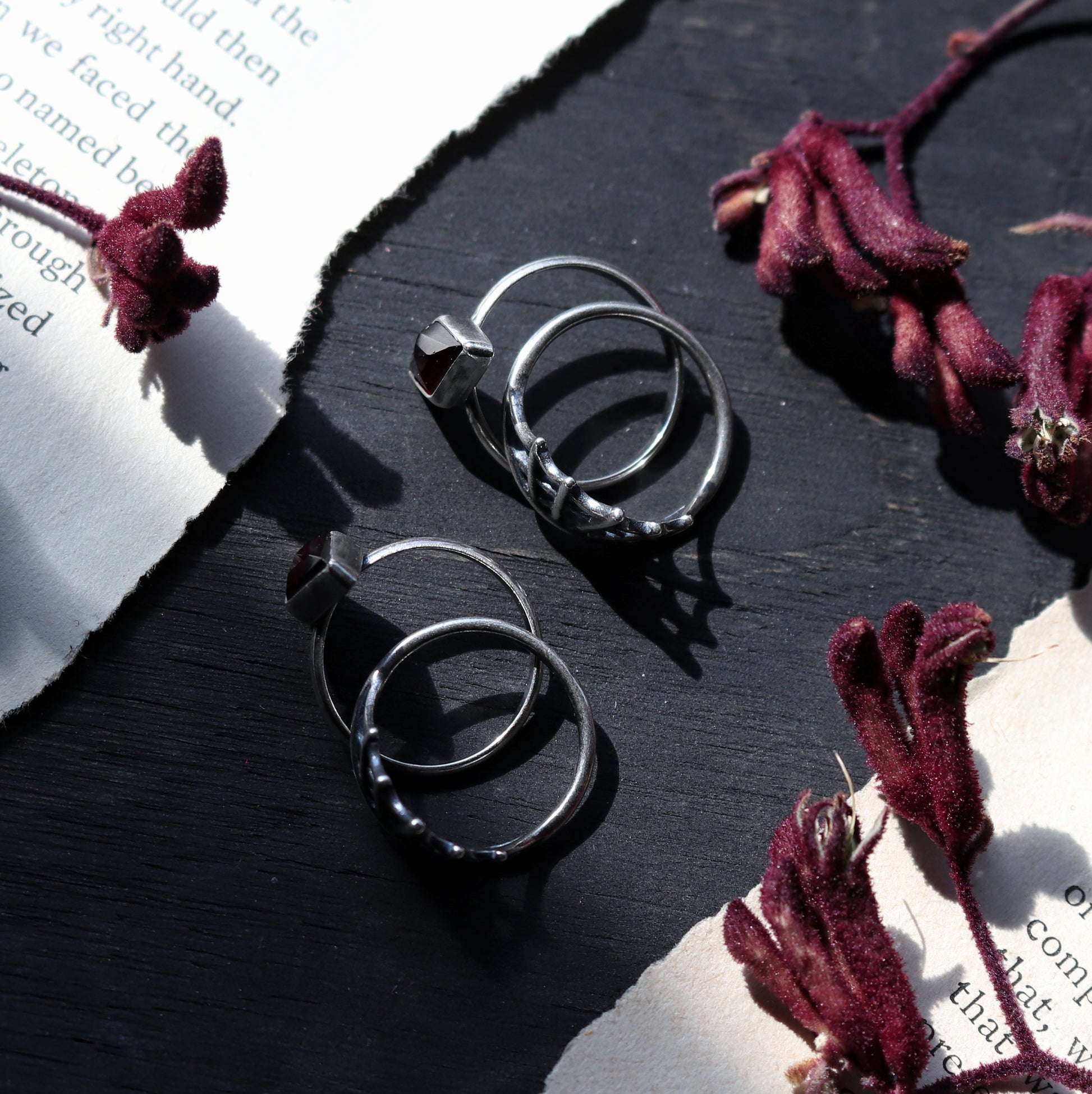 PRODUCT DIMENSIONS & SPECS: Rings Feature Red Garnet gemstones, only 2 sizes available.